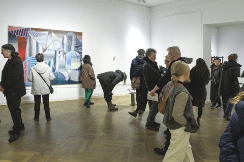 In seinen fotografischen Arbeiten findet Florian Bong-Kil Grosse Bedeutsames in alltäglichen, urbanen Situationen. Präzise Beobachtungen von menschlicher Kommunikation, Interaktion und Gestik stehen dabei häufig im Mittelpunkt. Friederike Hammann präsentiert ihr Dark Diary, eine fortlaufende Serie abstrakter, düsterer Zeichnungen, die den Angriffskrieg Russlands auf die Ukraine begleiten. Peter Hock reizt das Mehrdeutige, scheinbar Nutzlose, das in seinen großformatigen Kohlezeichnungen eine Sinnhaftigkeit erfahren kann. In ihrer fortlaufenden Arbeit Shifting Geologies unternimmt Silvia Noronha den Versuch, geologische Prozesse und zukünftige Landschaften zu simulieren. Katharina Reich setzt sich in ihren Arbeiten mit ihrer Herkunft und Identität sowie historischen und kulturellen Bezügen auseinander. Aus Sammlungen an Alltagsobjekten schafft sie flüchtige Ordnungssysteme. Für ihre Malerei Barockisierende Abweichung nahm Antje Taubert den Science-Fiction-Roman Solaris des polnischen Autors Stanisław Lem aus dem Jahr 1961 als Ausgangspunkt. Es entstand eine Räumlichkeit, in der sich die gleichmäßigen Flächen aufzulösen und aufzubrechen scheinen. Sarah Wohlers Installation ist eine Suche nach einem Ort der Zugehörigkeit und Geborgenheit.